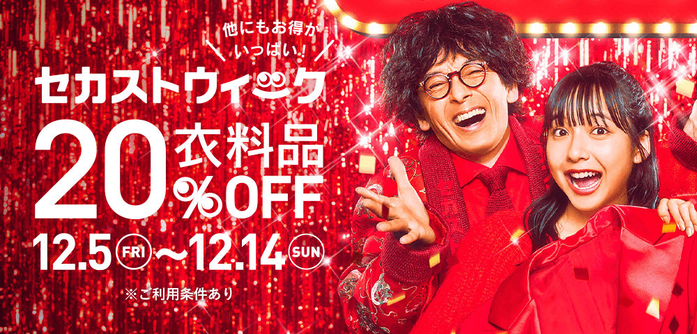 今回開催する『セカストウィーク』は、キッズ衣料を含むほぼ全ての衣料品が、店舗とオンラインストアで同時に20%オフとなる、セカンドストリート最大規模のセールイベントです。
