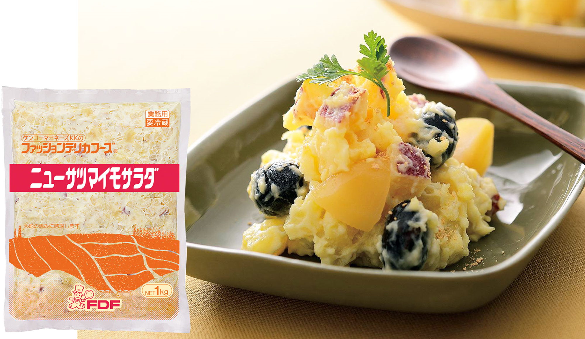皮ごと10mmの角切りにしたさつまいもを使用し、彩りと存在感を出しました。ホイップクリームやフルーツソースをかけてスイーツサラダにしたり、パン生地に巻き込んで焼くなど、幅広くお使いいただけます。