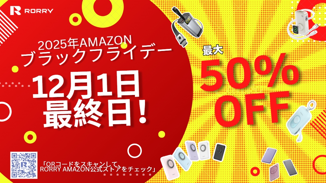 高い技術力を活かし、デザイン性にもこだわった充電器・モバイルバッテリー製品を手掛けるRORRY(ロリー)は、2025年12月1日のAmazonブラックフライデー最終日に、冬の外出や出張にぴったりなおすすめアイテムを厳選してご紹介します。