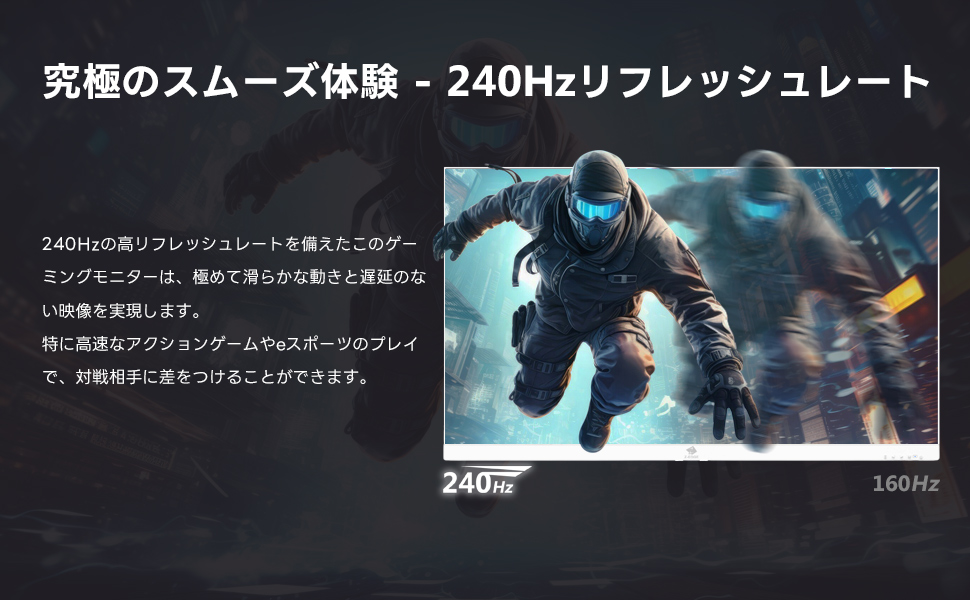 1. 極限の滑らかさ「240Hz & 1ms(MPRT)」で、一歩先を読む