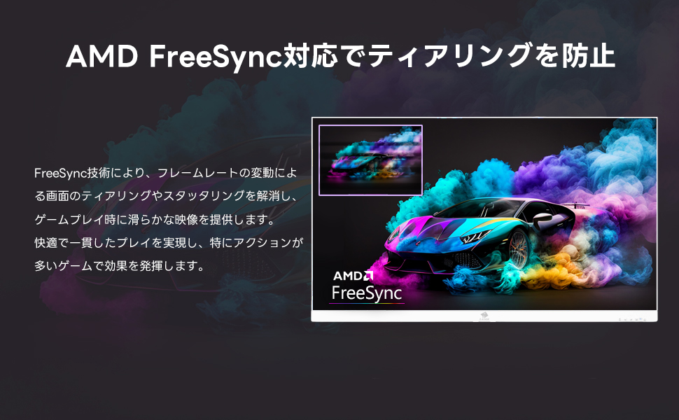 AMD FreeSync™ 対応: グラフィックボードとモニターの表示タイミングを同期させ、画面のティアリング(割れ)やスタッタリング(カクつき)を完全に排除。どんな場面でもスムーズで破綻のないビジュアルを保証します。