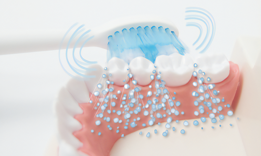 細かな振動で物理的な摩擦は少ないながらも、汚れを浮かせて除去。歯の裏側など磨きにくい部分にもマイクロバブルが入り込み、口内を清潔に保ちます。
