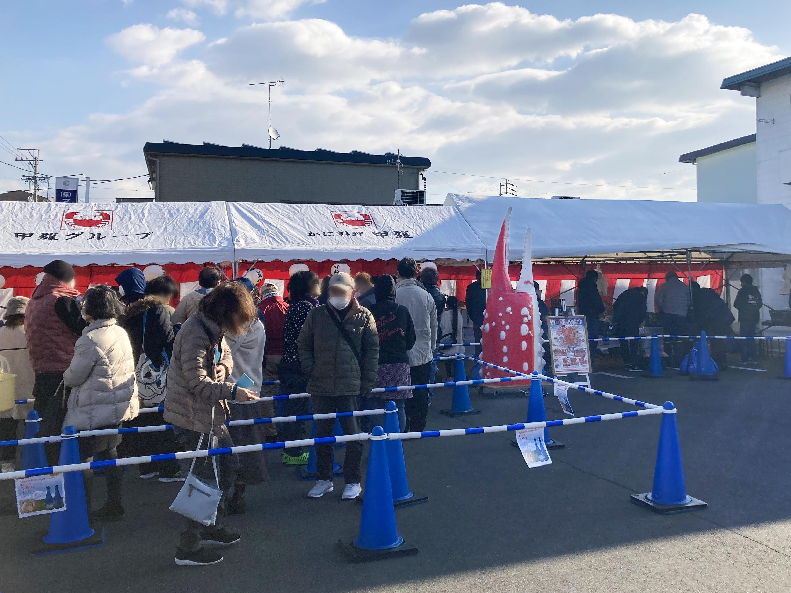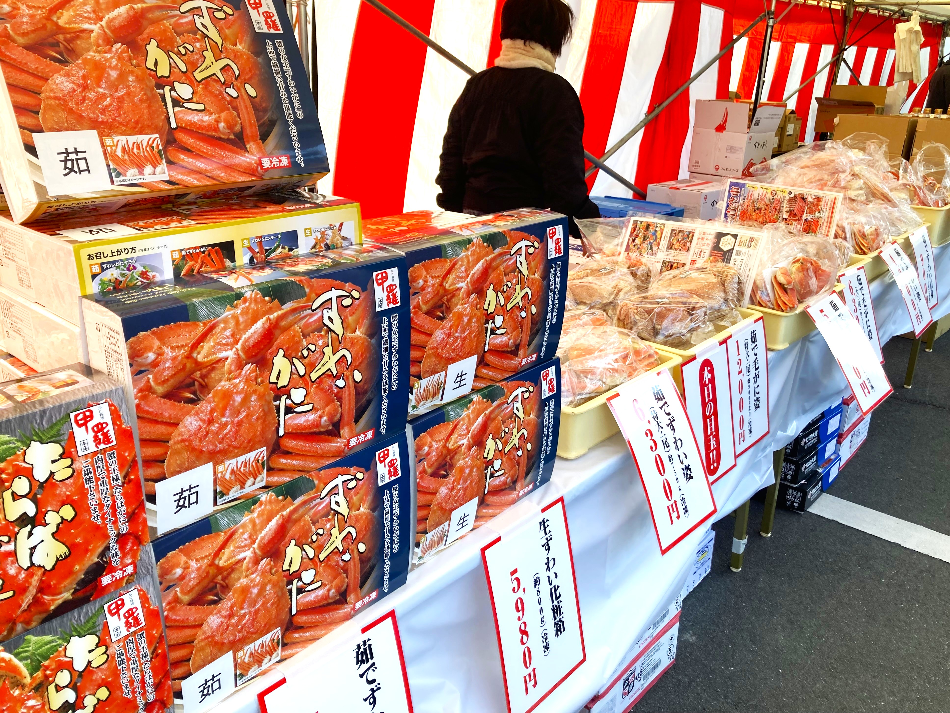 年末年始のご家庭用に上質な甲羅本店の蟹を求めて、毎年多くのお客様が行列をつくる様子は年末の風物詩となっています。