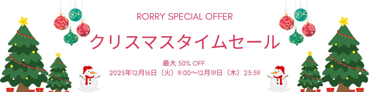女性に寄り添うスタイリッシュ充電ブランド RORRY(ロリー)は、2025年12月16日(火)0:00〜12月19日(木)23:59 の期間、「Amazon クリスマスタイムセール」 を開催いたします。