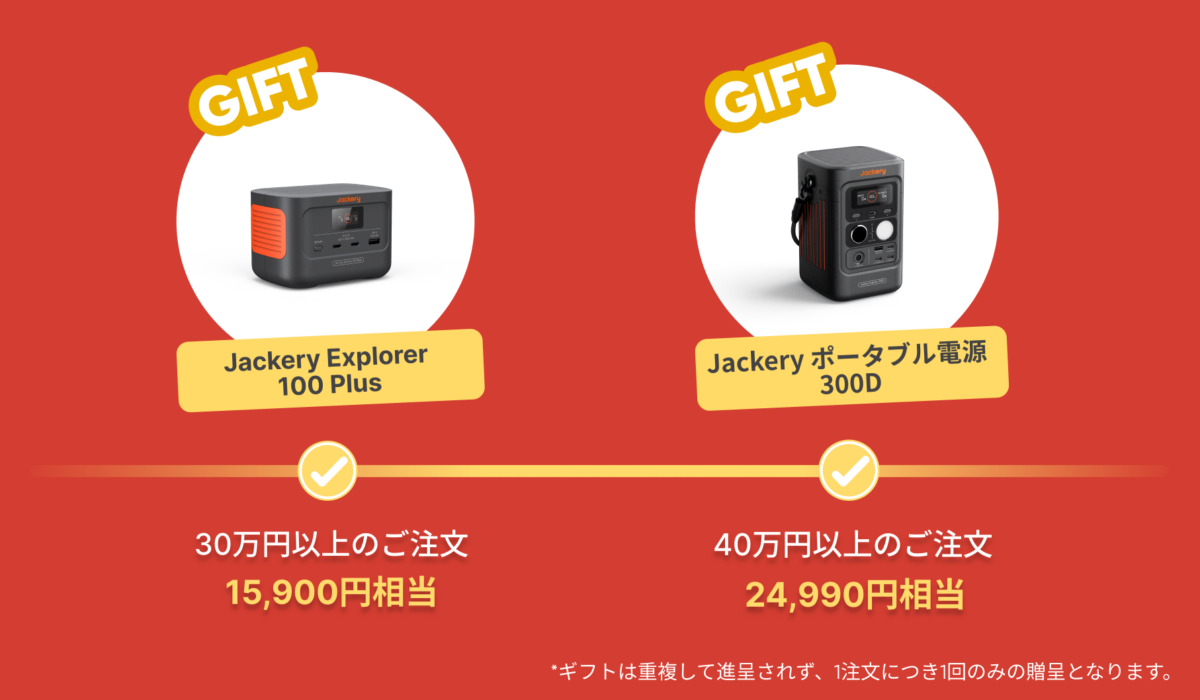 40万円以上のご注文:Jackery ポータブル電源 300D(24,990円相当)