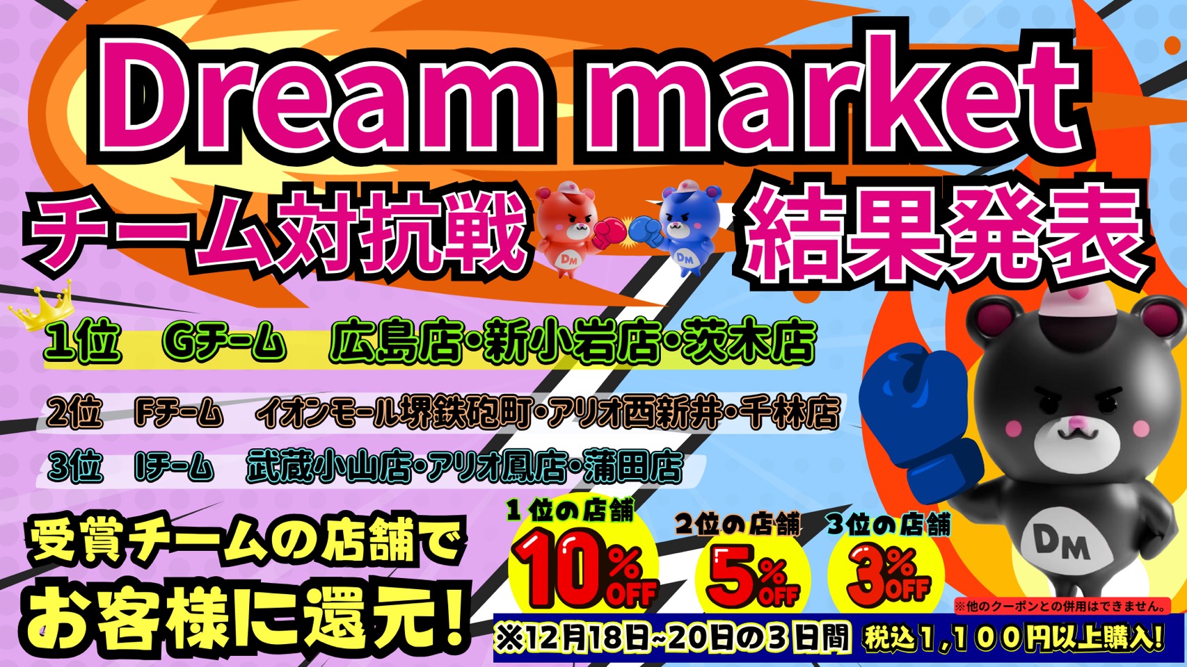 「Dream marketチーム対抗戦」の結果発表上位3チームで特別割引最大10%実施