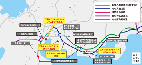 ・EXPASA浜名湖(集約) ・NEOPASA岡崎(集約) ・豊田上郷SA(上り) ・豊田上郷SA(下り)