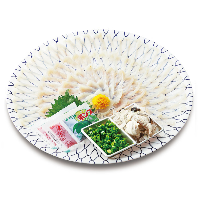てっちり2~3人前にてっさ1~2人前、焼きヒレ・鉄皮をあわせたセット。