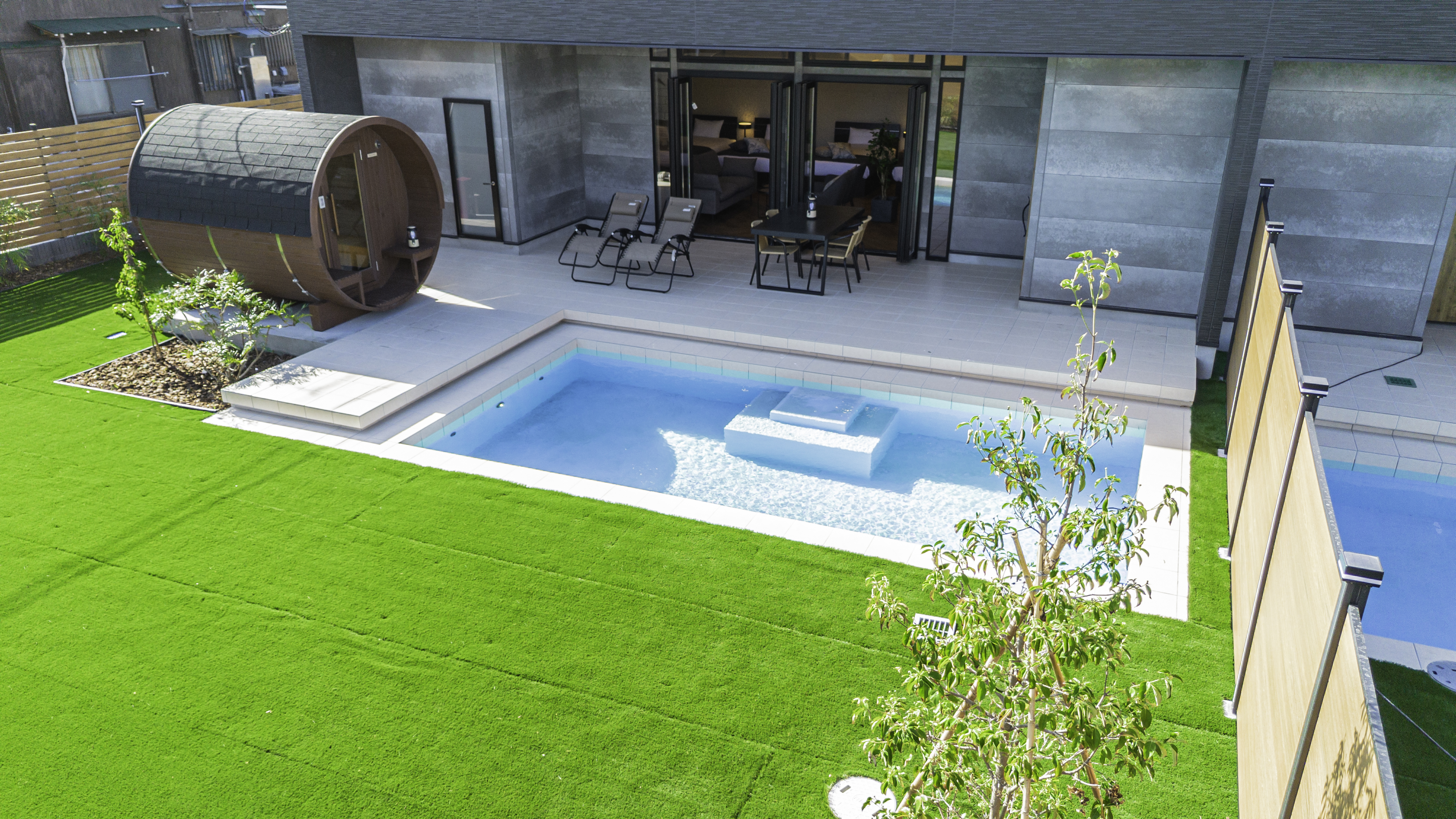 各ヴィラには、専用プール・ドッグラン・サウナを完備。