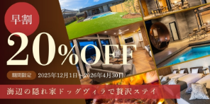 貸切ヴィラならではの自由で贅沢なひとときを、通常より”お得な30%OFF”でお楽しみいただけます。