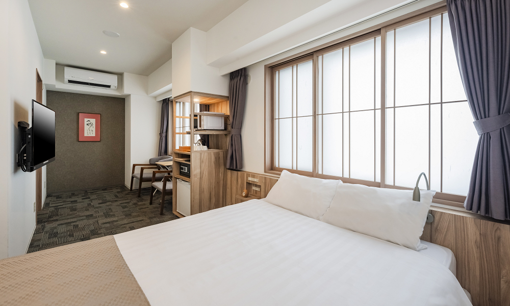 さらに客室には全室に電子レンジを完備!周辺のコンビニやドラッグストアなどでお買いのもの楽々。お弁当やお惣菜などの温めにも便利にご利用いただけますよ。