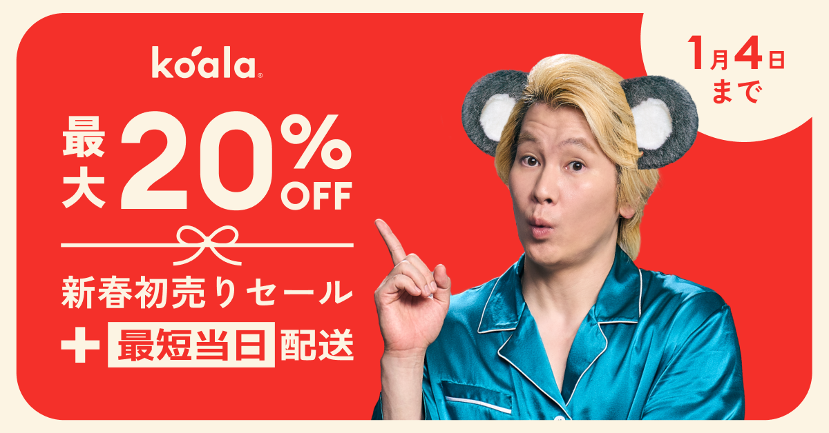 月26日(金)〜2026年1月4日(日)の間、マットレスやソファーベッドなど人気商品が最大20%OFFになる「コアラ新春初売りセール」を公式ウェブサイトとコアラ青山ストア(東京都港区)にて開催いたします 。新しい1年は、「スリパ」を高めるコアラマットレスで快眠生活をスタートしましょう!