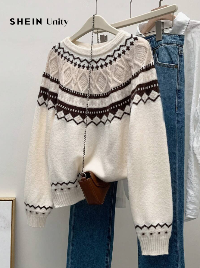 商品名:SHEIN Unity フェアアイル柄 ケーブル クルーネックセーター