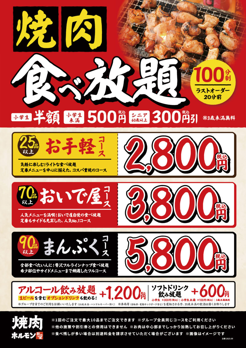 「おいで屋の焼肉食べ放題コース・メニュー」について