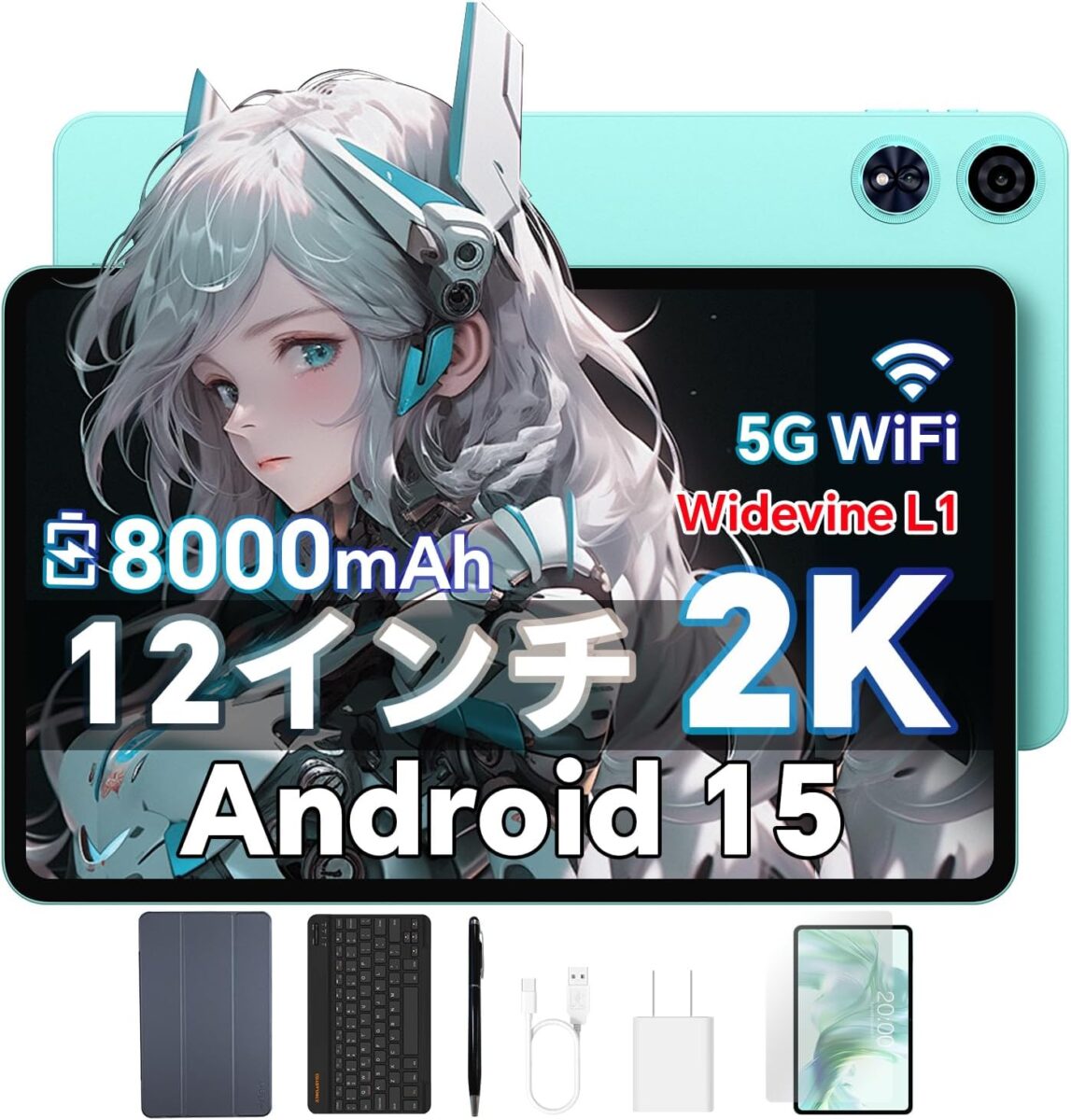 【キーボード&ケース付属セット|8000mAh × Type-C充電 × 5GHz Wi-Fi × GPS対応】 ▶本商品はタブレット 12インチ wi-fiモデル本体に保護ケース・キーボードを同梱したタブレット キーボード付きセット。受け取ったらすぐ、ケースのスタンド機能やキーボード入力が使え、学習・資料閲覧・簡単な作業に対応します。▶大容量 8000mAh バッテリー搭載のAndroid 15 タブレットで、通勤動画視聴、長時間オンライン授業、連続学習も安心。