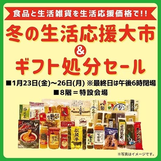 【開催概要】冬の生活応援大市&ギフト処分セール ※最終日は当会場のみ午後6時閉場