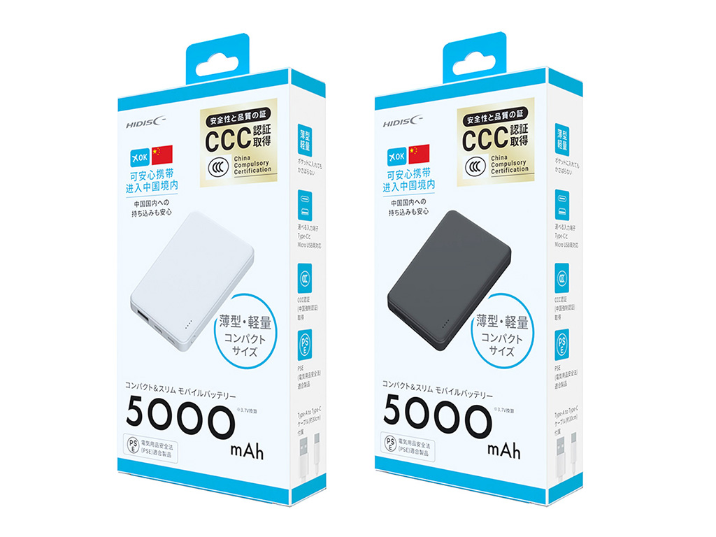 3C認証モバイルバッテリー5000mAh