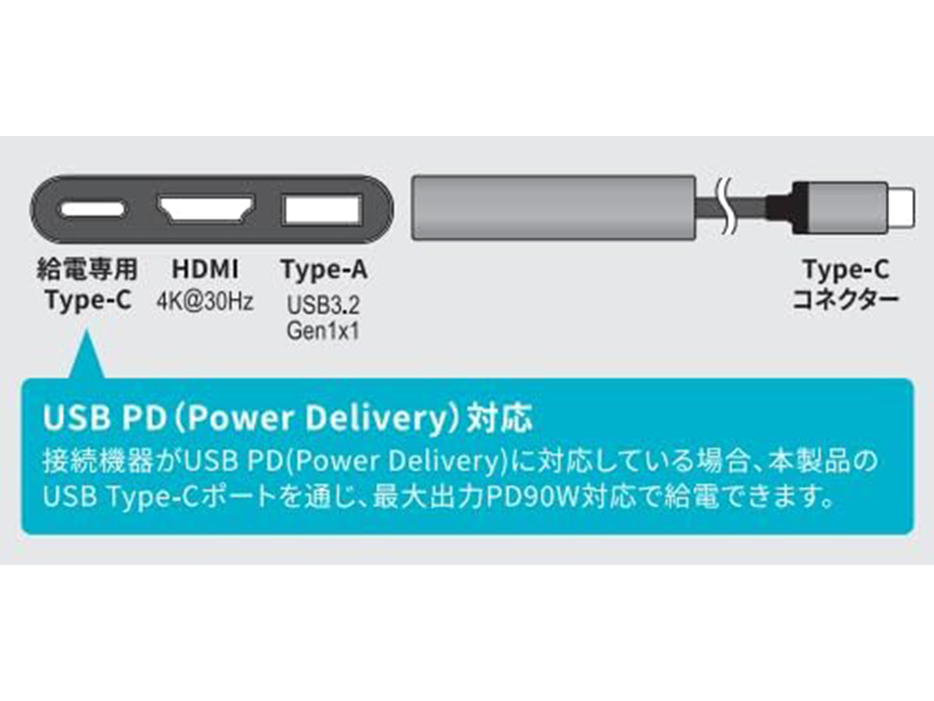 4K対応のHDMIポートを持つ3in1、5種の中で唯一USB Type-A入力の4in1、PD最大90W対応のUSB Type-Cポートを搭載した5in1・6in1など、