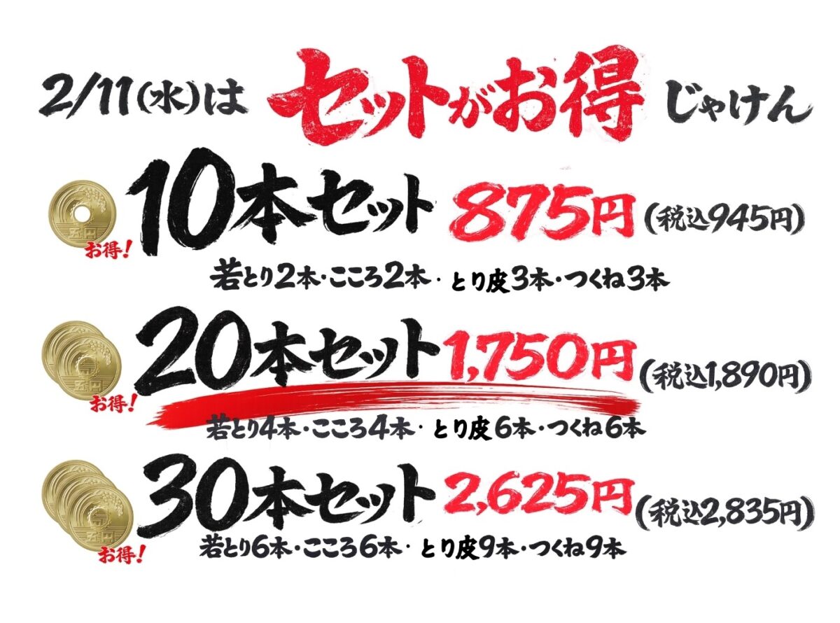 皆様への感謝を込めた、2月11日(水・祝)限定のお持ち帰り対象串です。