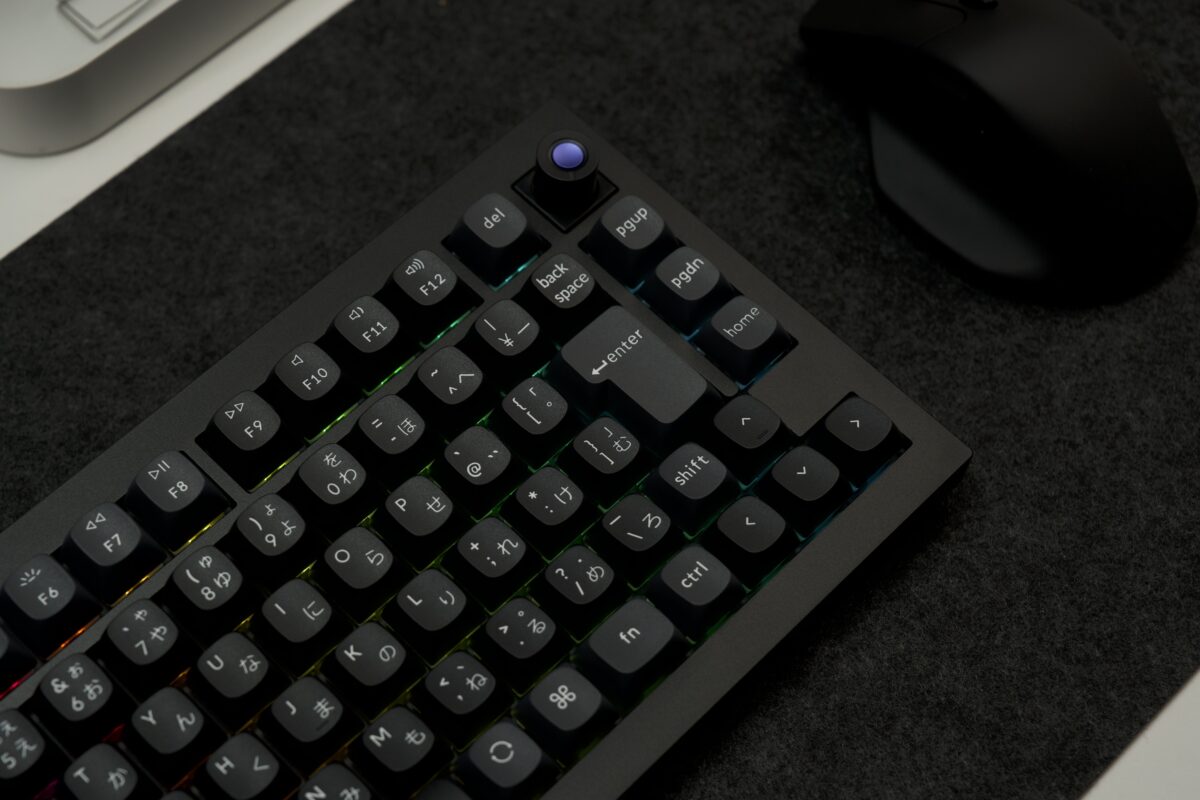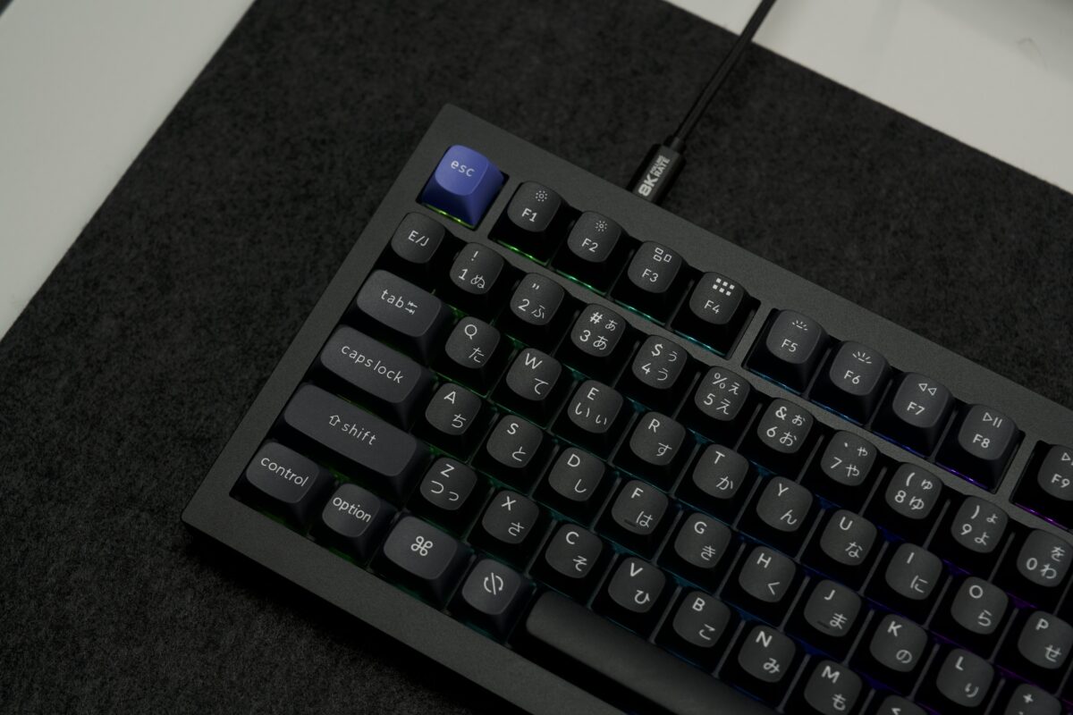 75%レイアウトながら、矢印キーやファンクション列を無理なく配置し、作業効率と省スペース性を両立しています。