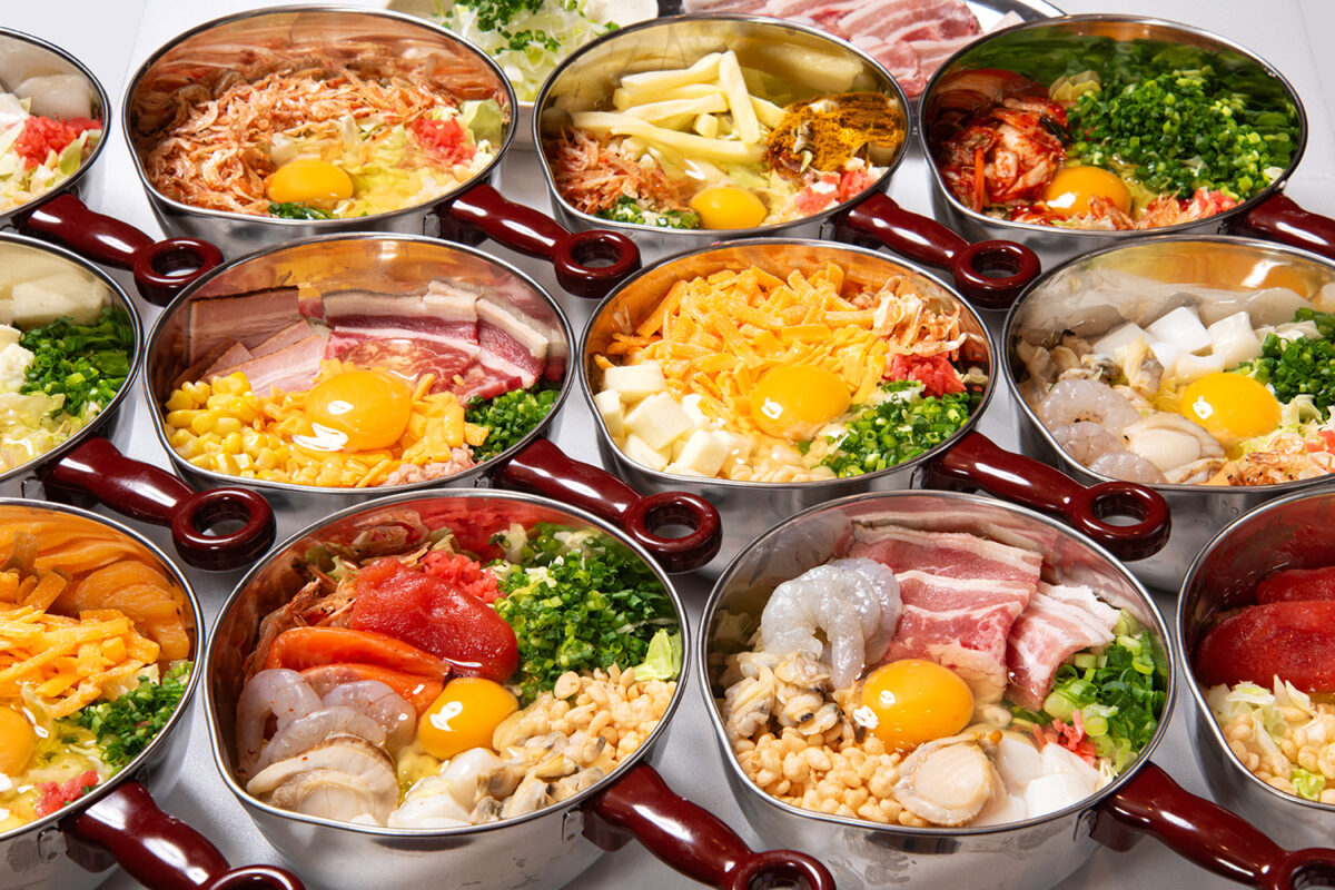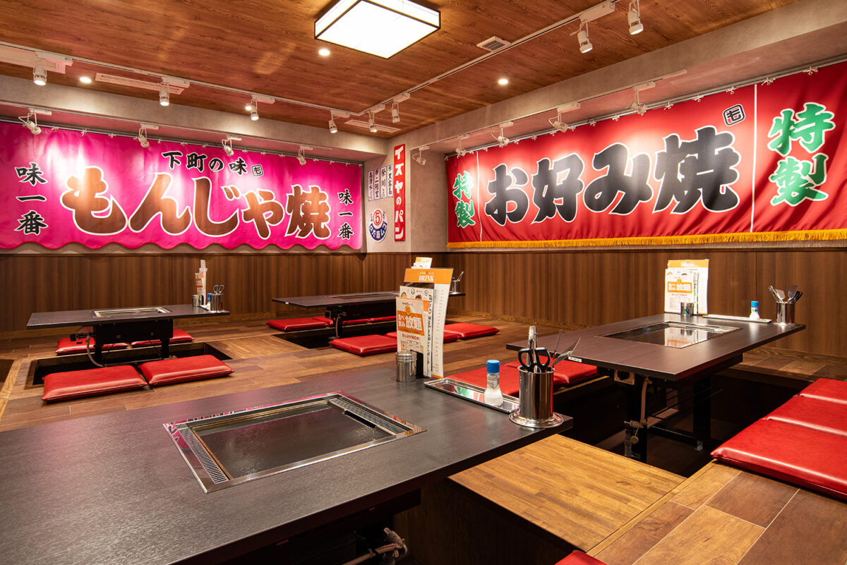 赤羽店・立川店ではイベント期間中、単品のお好み焼き・もんじゃ焼きを全て20%オフで提供します。王道の「豚玉(780円→624円)」「海鮮玉(1,200円→960円)」や、「ベビースターもんじゃ(850円→680円)」「明太もちチーズもんじゃ(1,100円→880円)」、スタッフが目の前で焼き上げるモダン焼きなど全35種を用意します。熟成したかつおの枯節や宗田節を使った特製出汁を使用したこだわりの生地は、ふんわりとした食感。香りも豊かで具材の味わいをしっかりと引き立てます。