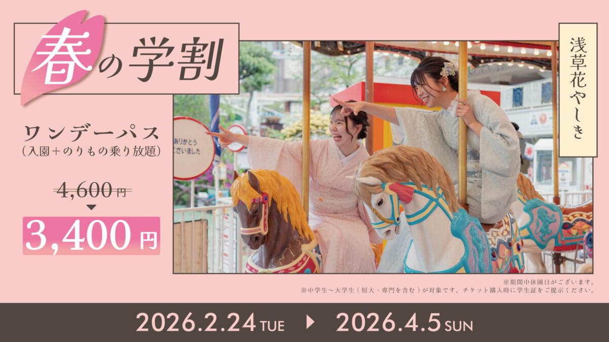 株式会社花やしき(東京都台東区、代表取締役社長 西川豊史)が運営する日本最古の遊園地「浅草花やしき」は、2026年2月24日(火)~2026年4月5日(日)の間、おトクなチケット『春の家族割』と『春の学割』を発売します。