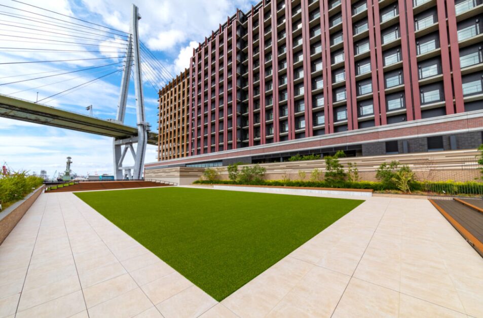 イベントを行える”ステージエリア”の3部構成。天保山大橋や海遊館、遠くには大阪ベイエリアの街並みが見渡せます。夜にはホテルのライトアップと共にベイエリアの美しい夜景が楽しめます。