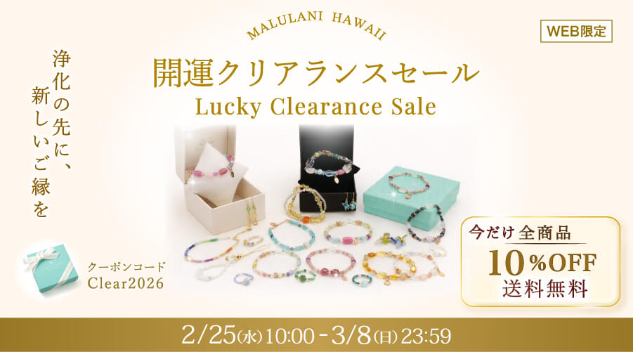 ホームキャンペーン【春の開運応援】パワーストーンアクセサリーが10%OFF+送料無料|ハワイ発「マルラニハワイ」春のクリアランスセール開催