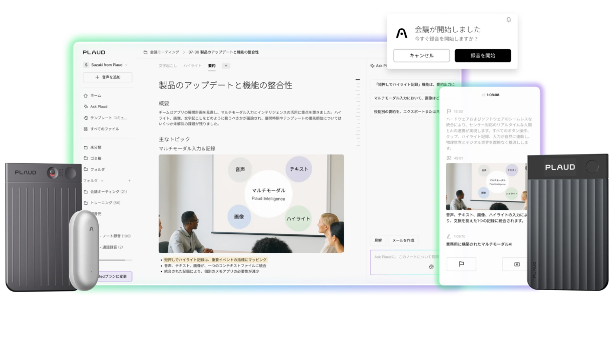 Plaudは、2023年に発表したAIボイスレコーダーシリーズが全世界ユーザー数累計150万人を突破し、世界で信頼されるAI議事録ソリューションを提供しています。「話す・聞く・見る・考える」といった日々の業務活動から知性を捉え、まとめ、活かせるようにするための次世代インテリジェンス基盤の構築をミッションに掲げています 。
