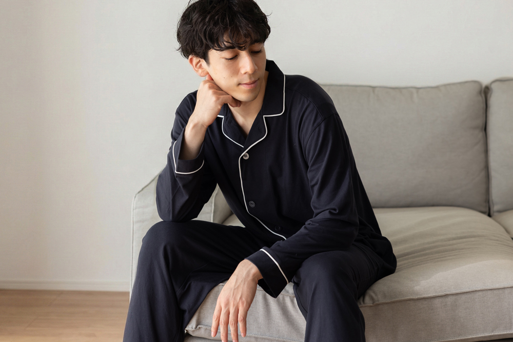 HEIQ SmartTemp調温テクノロジー採用の次世代パジャマは、体温変化に応じて熱を逃がしたり保温したりし、寒暖差を調整。吸汗速乾・綿混素材で快適な着心地を実現し、四季を通じて安定した快眠をサポートします。