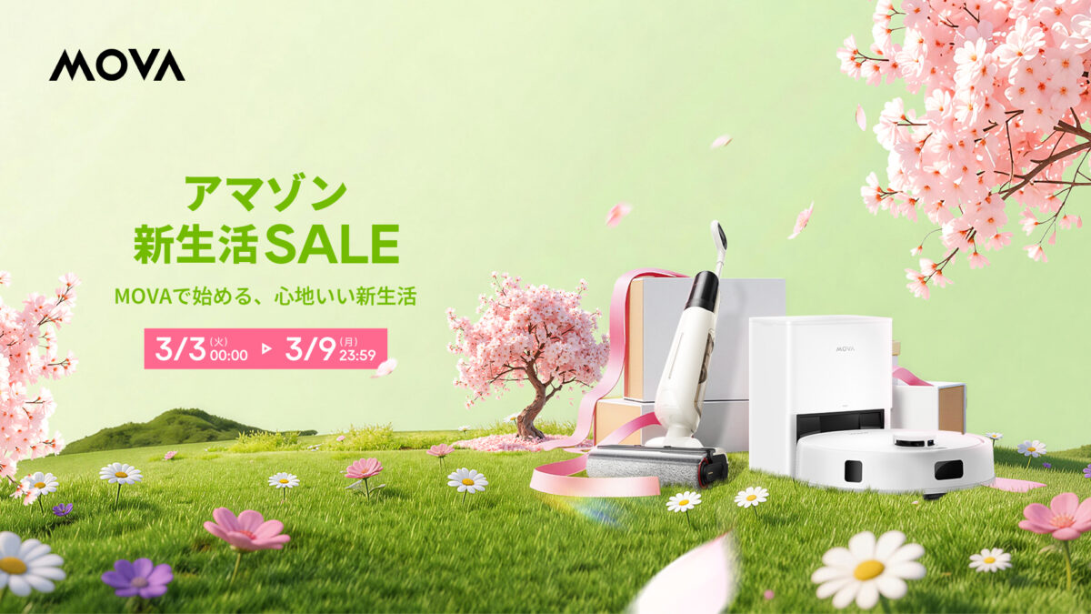 スマート家電のリーディングカンパニーであるMOVAの日本法人 Spacewalker Technology Japan株式会社(以下、MOVA)は、2026年3月3日(火)0時から先行開始した「Amazon新生活セール」にて、3月9日(月)23時59分までの期間限定で、MOVAのロボット掃除機や水拭き掃除機を最大51%OFF※で販売します。
