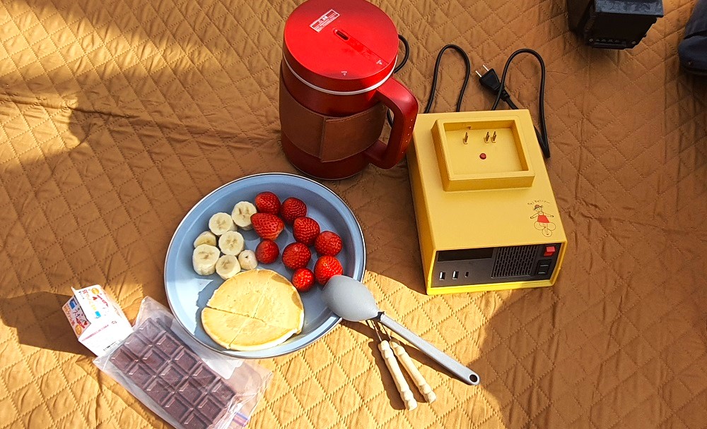 電源がない公園やキャンプ場でも、ポータブル電源と小型調理器があれば、その場で楽しめる“あつあつチョコフォンデュ”。子どもが大喜びするデザート作りで活躍するのが 一合炊きサイズの小型調理器『ていとうシェフ ちびっこ』です。