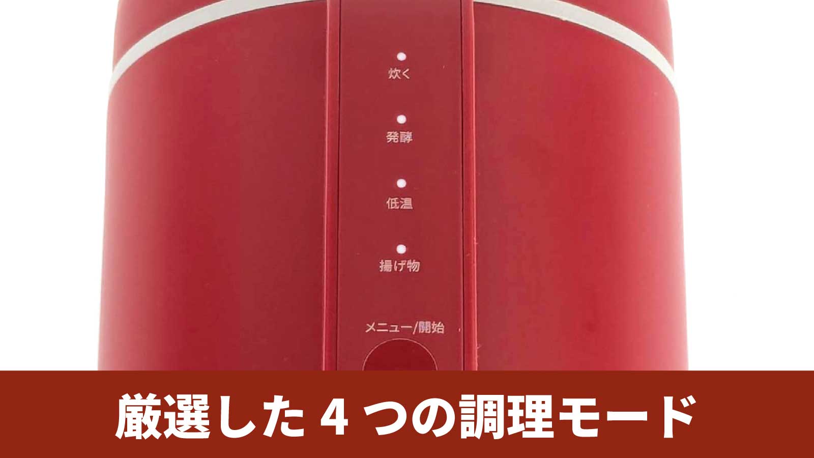 コンパクトながら、炊く・40℃発酵・低温調理・揚げ物の4つのモードを搭載する『ていとうシェフ ちびっこ』。