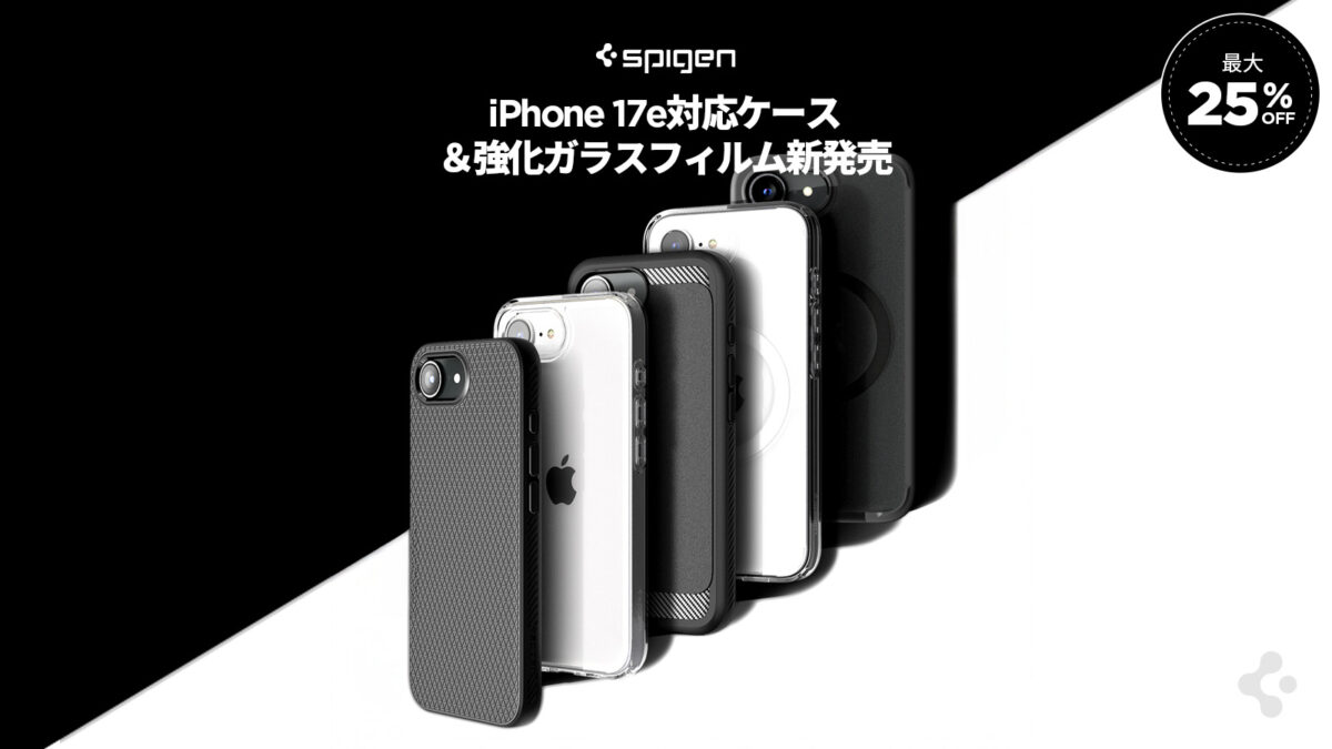 Spigenは、iPhone 17eの発売に合わせて、耐衝撃ケース26種と高透明の強化ガラスフィルム3種を展開。デザイン性と保護性能を兼ね備えたアクセサリーを最大25%OFFでお届けします。