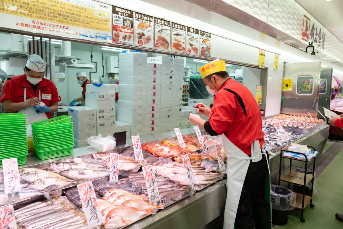 角上魚類では、知識豊富な「親切係」という魚のコンシェルジュのようなスタッフを全店に配置しております!魚の特徴や美味しい食べ方、身おろしのアドバイスなど、お客様においしく魚を召し上がって頂けるようにサポートしています。