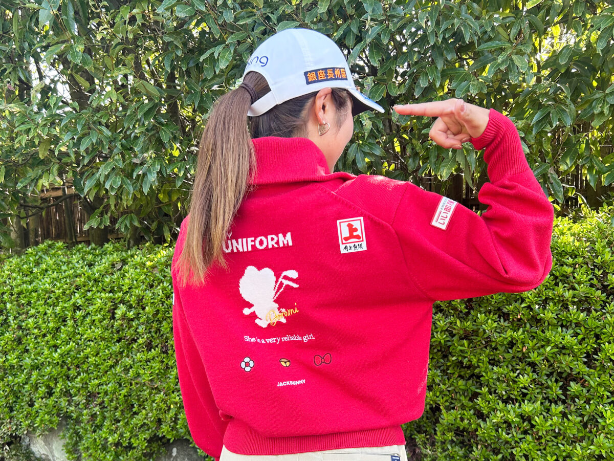 昨シーズン、初のツアー優勝から瞬く間に年間女王まで登り詰めた佐久間選手。今季も「年間5勝、メジャー制覇」という高い目標を掲げ、さらなる高みを目指すその姿を、角上魚類はウェア右肩のロゴと共に全力でサポートしてまいります。