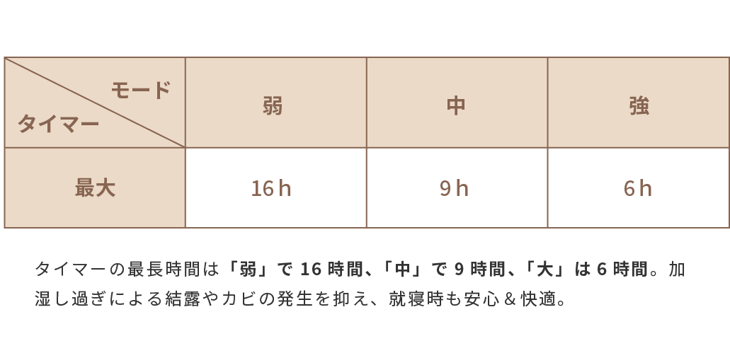一方で、過度な加湿はカビの発生につながるため、湿度管理には注意が必要です。使用する際はタイマー機能付きの製品を選び、エアコンの風の通り道や床より少し高い位置に気軽に移動できるものがおすすめです。