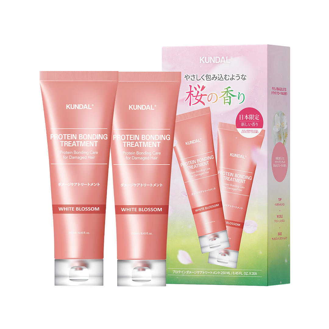 KUNDAL独自のプロテインボンディングシステムを採用し、ダメージヘアケアに特化したトリートメントを、日本限定の2個セットでご用意しております。新しい香りとともにアップグレードされた、季節感あふれるアイテムです。