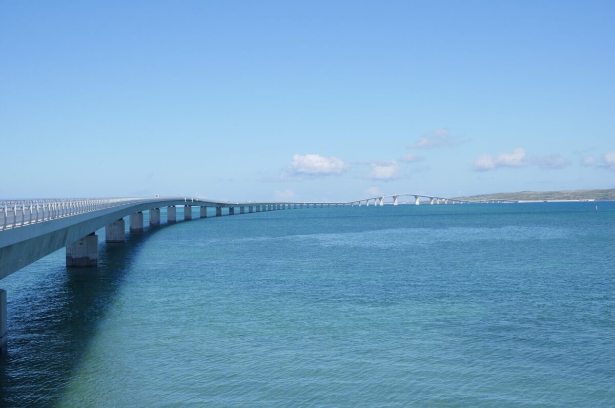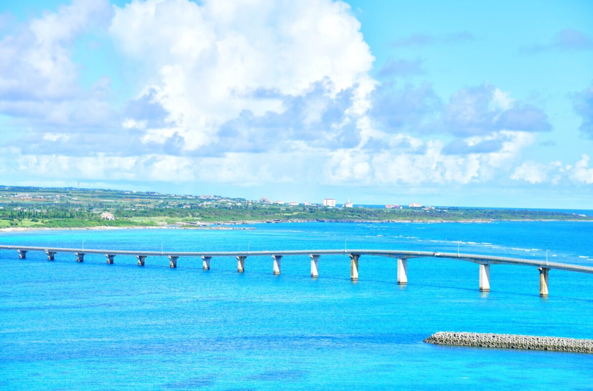 空港からスタートし、宮古ブルーの海がまぶしい伊良部大橋を渡ると、宮古島はすぐそこ。