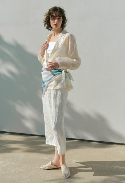 程良く肌魅せが叶い、シアーな抜け感もある初夏に向けて冷房対策や軽い羽織物として