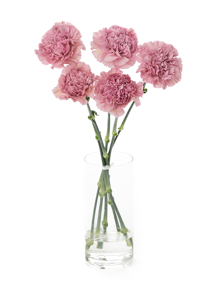 ボリュームたっぷりのフリル状の花弁が優雅な、淡いピンクのカーネーション。