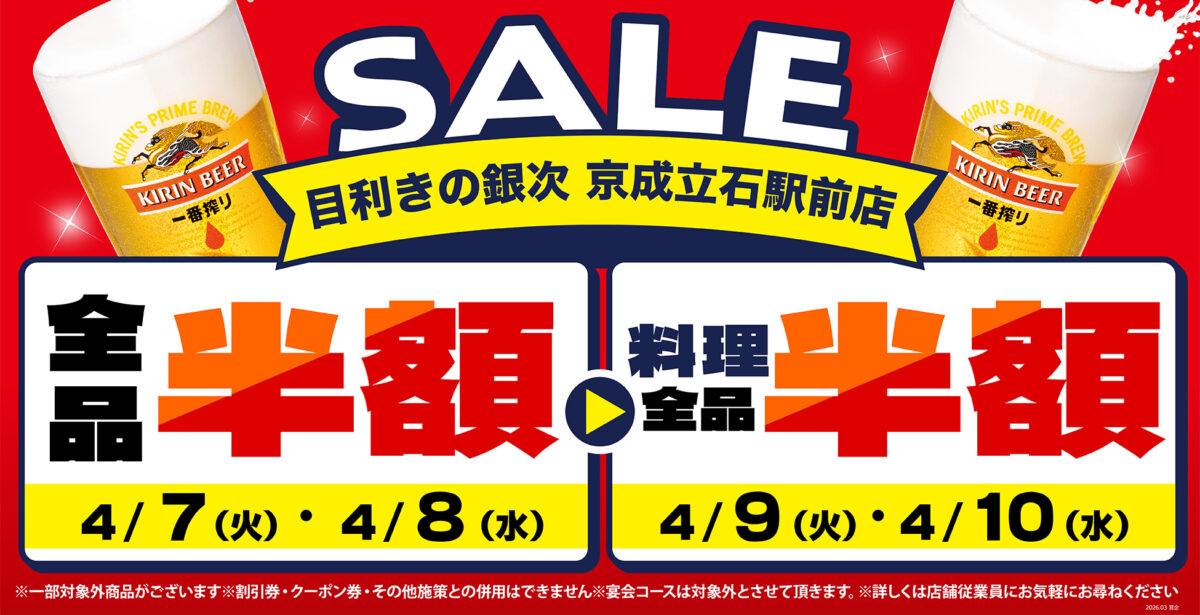 「目利きの銀次 京成立石駅前店」限定!お得な4日間!”