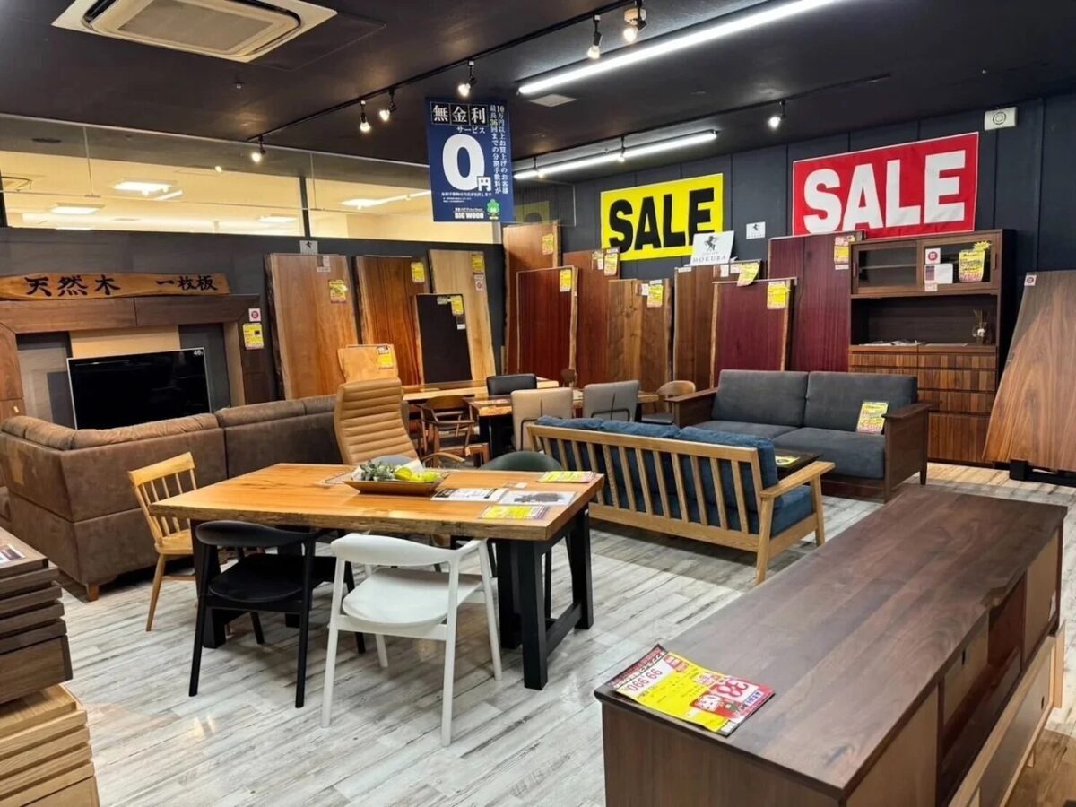 日本初の家具オフプライスストア「ビッグウッド」では、国内外の高品質な新品家具(キズ物・廃盤品等)を直接仕入れ、格安で提供。その魅力が支持され、現在は全国55店舗、グループ売上高90億円を超える規模へ成長しています。