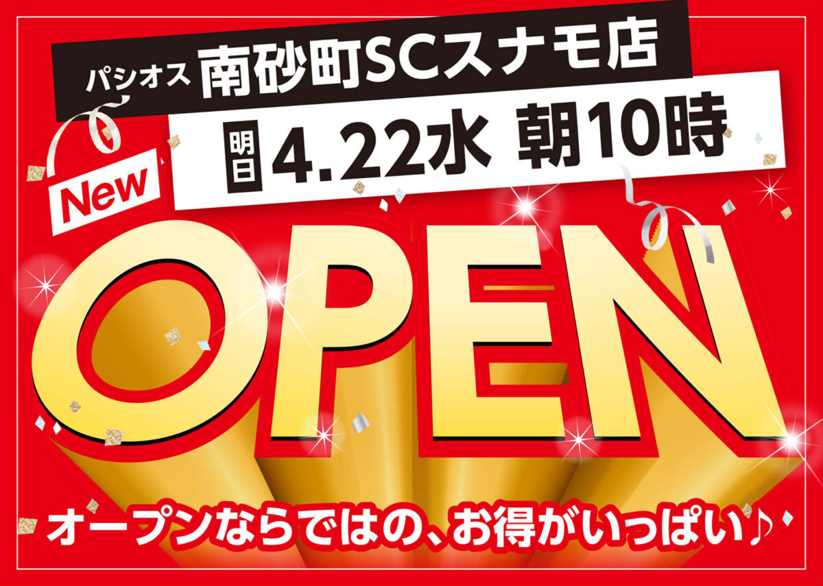 株式会社田原屋(本社所在地:神奈川県川崎市、代表取締役会長:田熊 太郎、代表取締役社⻑:甲斐 直裕)は、4/22(水)東京都江東区の「南砂町ショッピングセンターSUNAMO」内に、「パシオス 南砂町SCスナモ店」をオープンいたします。