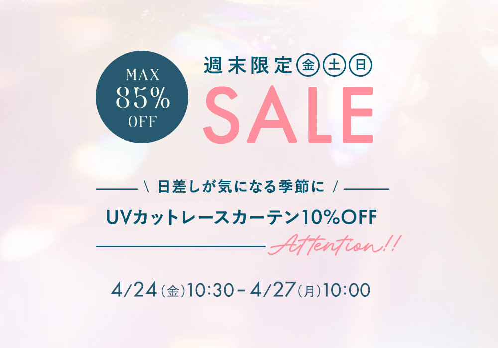ホーム商品サービス4月24日(金)10時半から開催!『パーフェクトスペースカーテン館 週末セール』UVカットレースカーテン10%OFF!