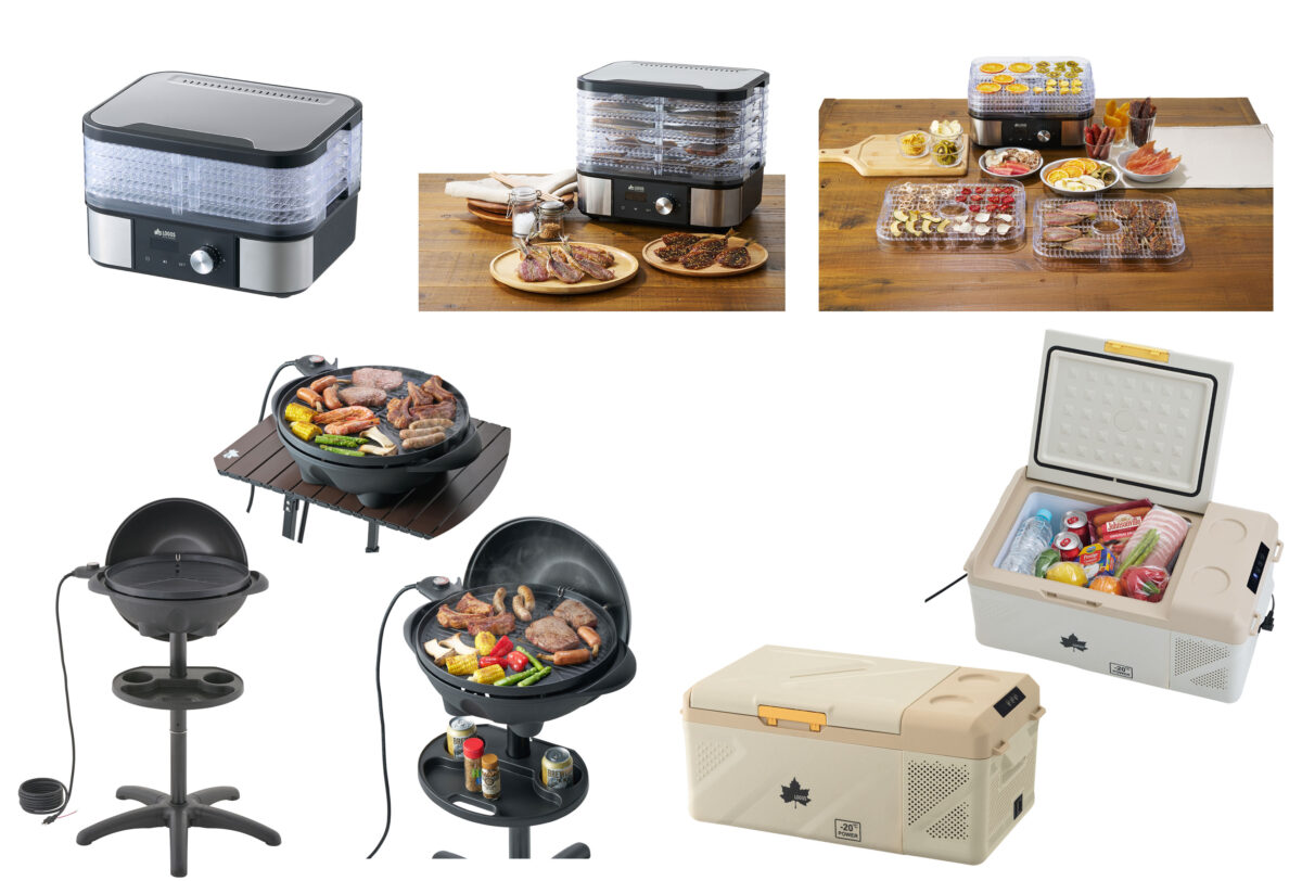 コンセントに挿すだけ!減煙仕様の電気式グリル「(野電)エレキャン・ファミリーエレグリル」や最大-20℃まで冷却可能な持ち運びできるコンパクトサイズの冷凍冷蔵庫「(野電)エレキャン・冷凍冷蔵庫 16-BF(-20℃/20℃)」、キャンプで手軽に本格的な干物調理ができるフードドライヤー「(野電)エレキャン・HIMONOドライヤー」など、野外でも使用可能なAC100Vの電化製品「エレキャン」シリーズをお得な価格でご購入いただけます。