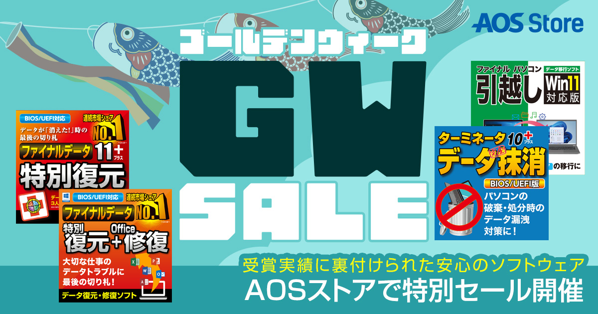 AIデータ株式会社(本社:東京都港区、代表取締役社長:佐々木 隆仁)は、2026年4月28日(火)16:00より、AOSストアにて期間限定の「ゴールデンウィークセール」を開催いたします。